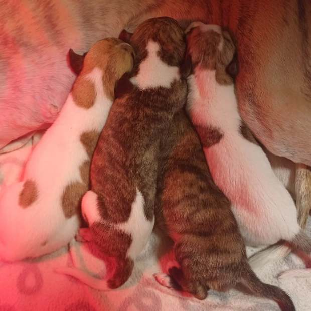 Vi hadde ett kull i juni 2025 etter Abba (7 år) og Ivo (13 år) – 4 valper, hvor vi beholdte en tispe sammen med Tove. Cassie bor hos henne. I mars er hun 9 mnd og junior, og selv om vi ikke får med oss NKK Kristiansand i år, blir det spennende når hun også skal entre voksenringen.